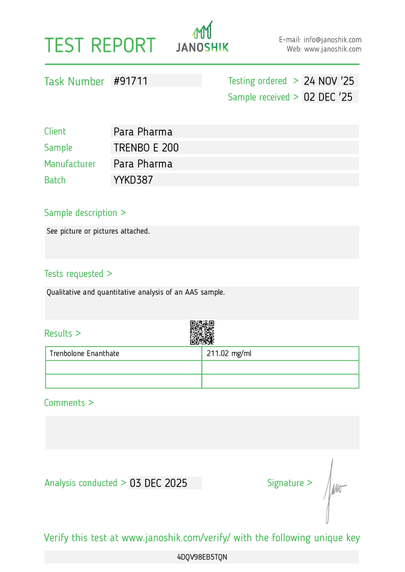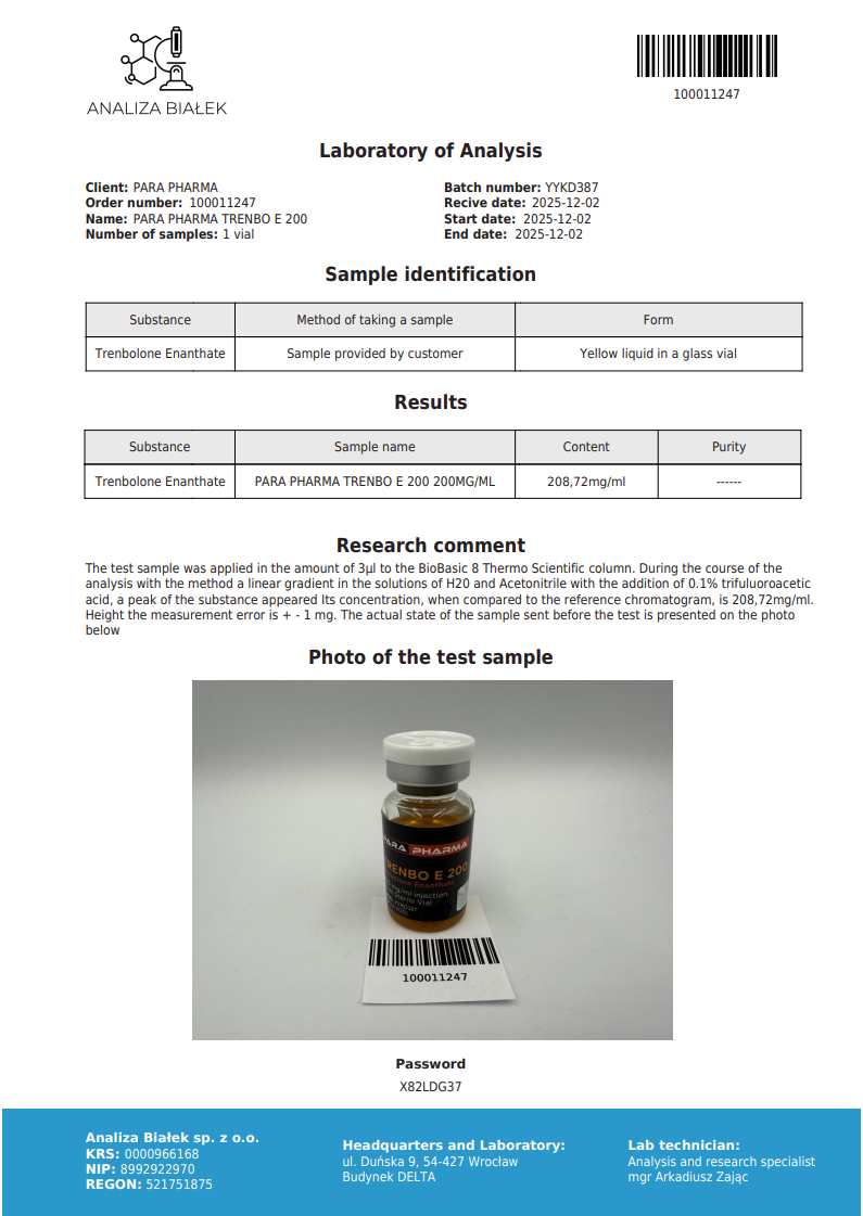 | Substance | Trenbolone Enanthate 200mg/ml |